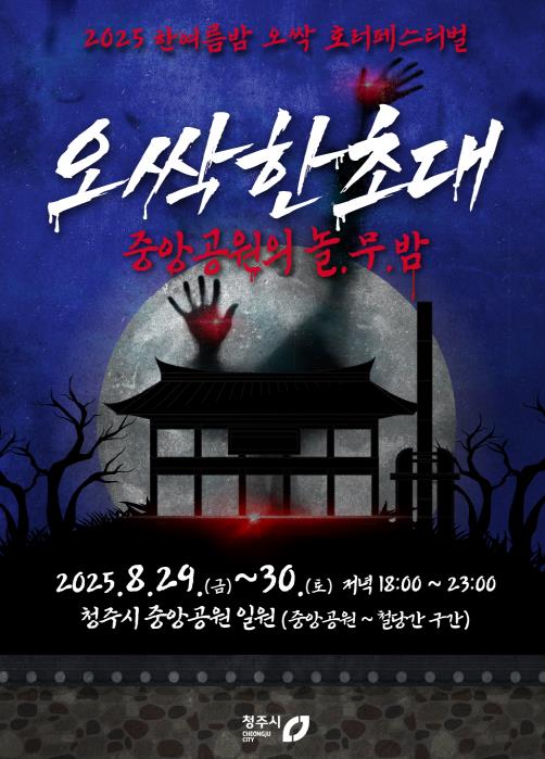 올해 처음 선보이는 청주형 K-호러 축제 ‘한여름밤의 오싹 호러 페스티벌’은 8월 29일부터 30일까지 이틀간 중앙공원 일원(중앙공원~철당간)에서 열린다.