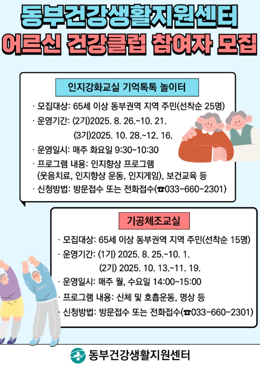 강릉시, 동부건강생활지원센터 어르신 건강클럽 운영 확대