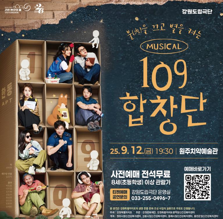 109는 자살예방 상담전화 번호로, 이 전화는 언제든 도움이 필요한 이들이 찾을 수 있는 심리적 연결망이다. 이번 공연은 단순한 문화 행사를 넘어, 위기 속에 있는 이들에게 “당신은 혼자가 아닙니다”라는 메시지를 전하는 특별한 무대가 될 예정이다.