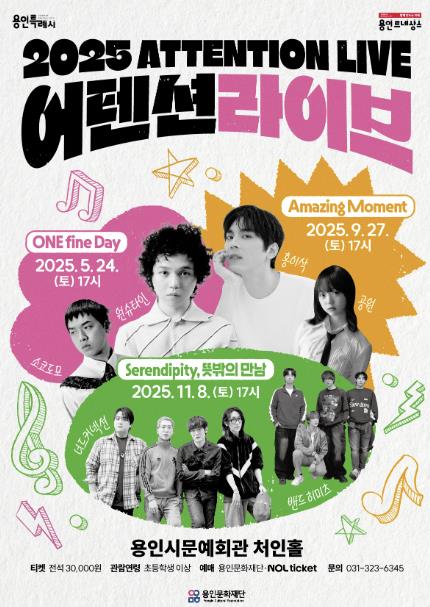 《어텐션 라이브》 시리즈는 매년 처인홀에서 개최되는 재단의 대표 청년 지원 콘텐츠로, 다양한 장르의 아티스트들이 무대에 올라 매회 매진을 기록하며 용인 시민들에게 큰 사랑을 받아왔다. 이를 통해 지역 음악 문화의 저변을 확대하는 데 기여하고 있다.