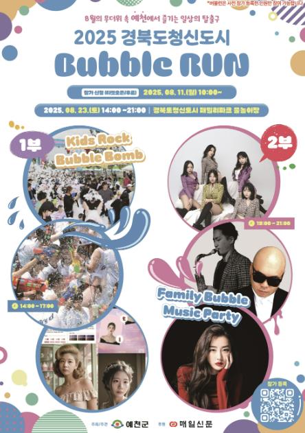 [뉴스스텝] 예천군이무더운 여름을 시원하게 날려줄 ‘2025 경북도청신도시 버블런(Bubble Run)’ 행사 참가자를 이달 11일부터 15일까지 사전 모집한다.
