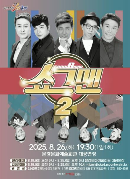 [뉴스스텝] KBS 개그콘서트 출신 5명의 개그맨이 펼치는 개그쇼 ‘쇼그맨 2’ 공연이 8월 26일 19:30 (1일1회)에 문경문화예술회관 대공연장에서 열린다.