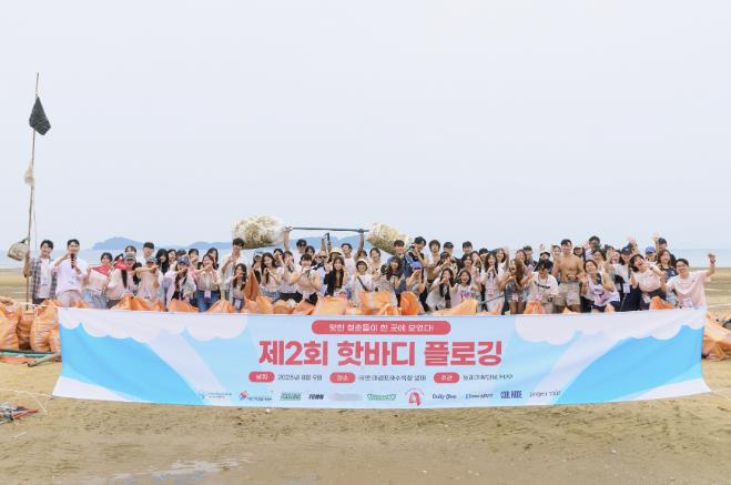 태안군에 따르면, 국내 인플루언서와 청년 등 총 70명은 지난 9일 남면 마검포 해수욕장 해변에서 쓰레기를 줍고 예술활동을 펼치는 ‘제2회 핫바디 플로깅’ 행사를 진행했다.