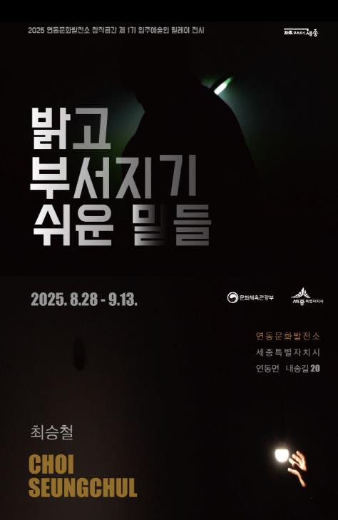 [뉴스스텝] 세종특별자치시가 28일부터 내달 13일까지 연동문화발전소에서 제1기 입주예술인의 세 번째 이어가는 전시로 최승철 작가의 ‘밝고 부서지기 쉬운 말들’을 개최한다.