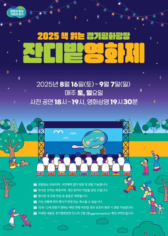 [뉴스스텝] 경기도가 16일부터 9월 7일까지 경기도청 북부청사 경기평화광장에서 매주 토요일·일요일 총 8회에 걸쳐 ‘2025 경기평화광장 잔디밭 영화제’를 연다.