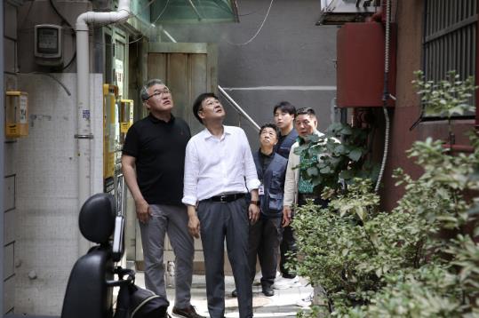 ▲ 돈의동 쪽방 지역 점검에 나선 정문헌 종로구청장의 모습(2023년 8월)