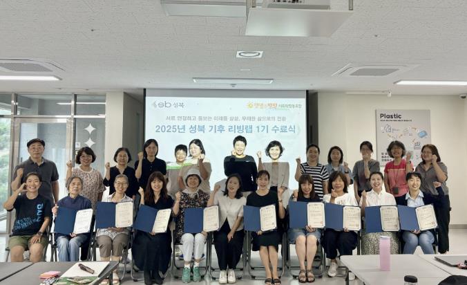 [뉴스스텝] ‘성북 기후 리빙랩’ 1기 수료식이 8월 6일 성북리앤업사이클플라자에서 열렸다. 이번 수료식은 서로 연결하고 돌보는 미래를 상상하고 무해한 삶으로의 전환을 꿈꾸는 리빙랩 1기의 마지막 일정으로 마련됐다.
