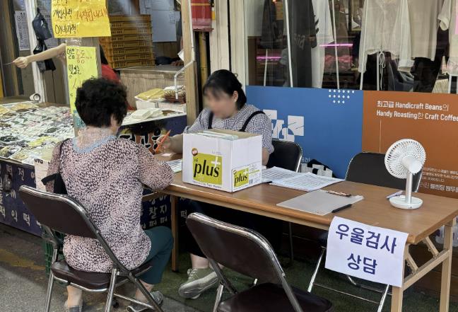 ▲ 지난 5월 부천시자살예방센터가 전통시장을 방문한 시민을 대상으로 이동검진을 진행했다. |