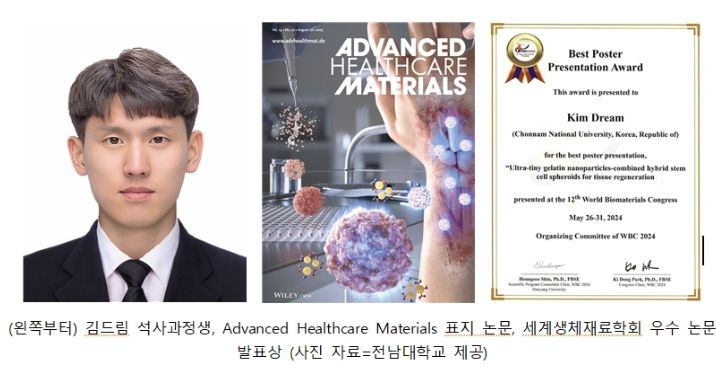 ▲ 김드림 석사과정생, Advanced Healthcare Materials 표지 논문, 세계생체재료학회 우수 논문 |