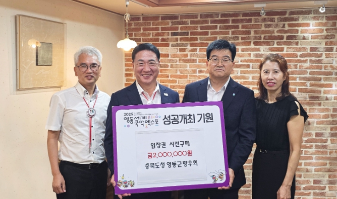 [뉴스스텝] 충북도청 영동군 향우회(회장 김두환)는 26일 2025 영동세계국악엑스포의 성공 개최를 기원하며 200만 원 상당의 입장권 구매 약정을 체결했다.