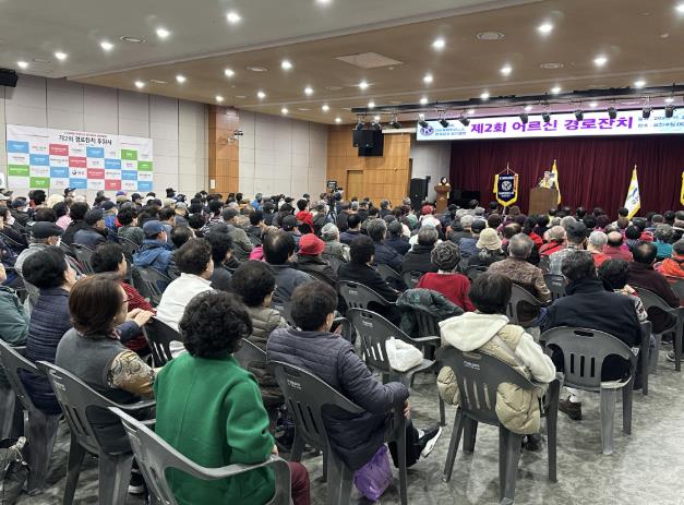 도시락 중식 식사로 시작한 이날 어르신 경로잔치는 가요, 국악, 태평소 연주 등의 공연으로 참석한 어르신들의 흥을 돋우었다. 이후 한방의약품, 사골육수, 세면도구 등 다양한 생필품들로 구성한 선물을 전달하며 어르신들의 건강을 기원했다.