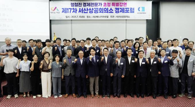 이날 서산상공회의소가 주관한 경제포럼에는 이완섭 서산시장, 관내 기업 대표 및 임원 등 80여 명이 참석했다.