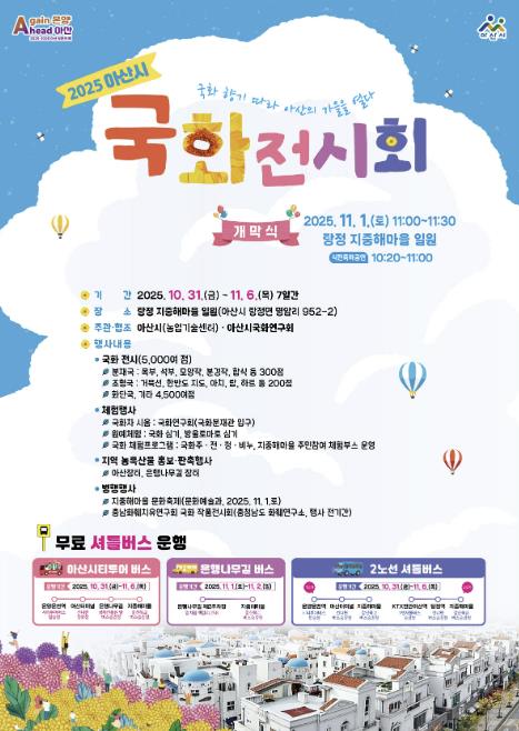 [뉴스스텝] 아산시는 깊어가는 가을 정취를 만끽할 수 있는 ‘2025년 아산시 국화전시회’를 오는 10월 31일부터 11월 6일까지 7일간 탕정면 지중해마을 일원에서 개최한다고 밝혔다.