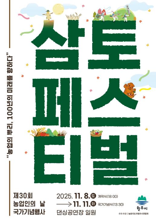 삼토페스티벌은 매년 농업인의 날을 기념해 열리는 농촌문화관광형 축제로, 올해는 제30회 농업인의 날 국가기념행사와 함께 진행된다. 원주시는 올해 슬로건을 ‘농업의 뿌리! 100년의 미래를 향하다’로 정하고, 농업인의 날 발상지로서 원주시의 위상을 재정립할 계획이다.