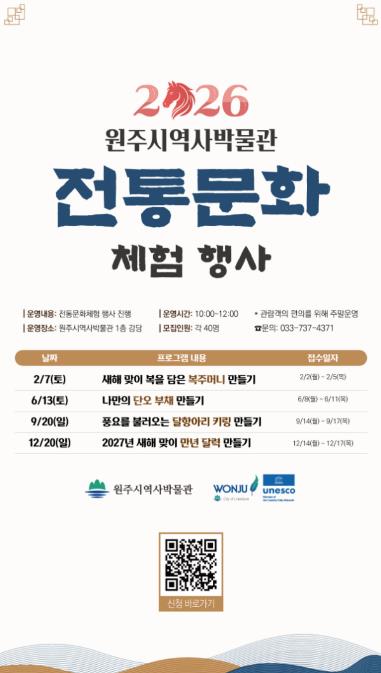 [뉴스스텝] 원주시역사박물관은 새해를 맞아 ‘2026 전통문화 체험 행사’를 운영한다.