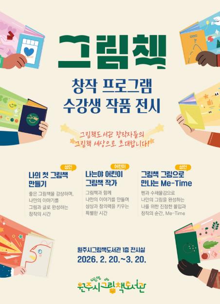 [뉴스스텝] 원주시 그림책도서관은 2월 20일부터 3월 20일까지 도서관 1층 전시실에서 ‘2025년 그림책 창작 프로그램 수강생 작품 전시’를 개최한다.