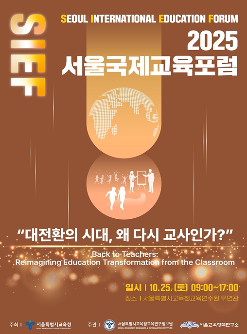 [뉴스스텝] 서울특별시교육청 산하 서울특별시교육청교육연구정보원 교육정책연구소는 오는 10월 25일 서울특별시교육청교육연수원에서 “대전환의 시대, 왜 다시 교사인가(Back to Teachers: Reimagining Education Transformation from the Classroom)”를 주제로 2025 서울국제교육포럼(Seoul International Education Forum, 이하 SIEF 2025)을 개최한다.