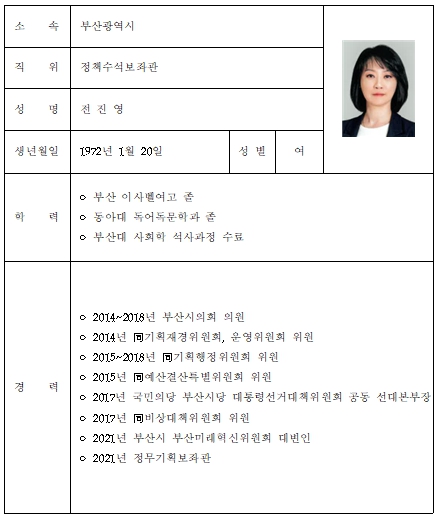 이 자리에는 경제 분야에서 쌓은 다양한 민관협력 경험을 바탕으로 전성하 전(前) 부산시 투자유치협력관에게 맡겨 체계를 갖춘다.
