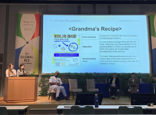 | ▲ 제14회 세계RCE총회에서 도봉구 대표로 한국외대 허윤서, 이유정 학생이 우수 사례를 발표하고 있다 |