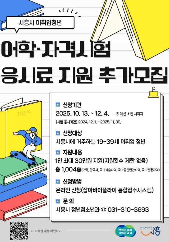 [뉴스스텝] 시흥시는 10월 13일부터 관내 취업 준비 청년들의 능력개발을 돕기 위한 어학ㆍ자격시험 응시료 지원 3차 모집을 실시한다.