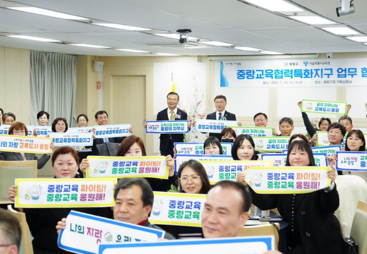 [뉴스스텝] 중랑구는 11월 26일 구청 4층 기획상황실에서 서울특별시교육청과 ‘중랑교육협력특화지구’업무협약을 체결했다. 이번 협약은 2019년 혁신교육지구, 2023년 미래교육지구 추진에 이어 지역 교육 협력사업을 확장하는 단계로, 구·교육청·학교 간 협력 구조를 체계화해 지역 기반 교육 환경을 강화하기 위해 마련됐다.
