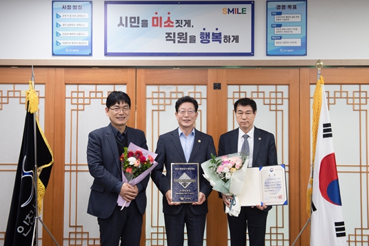 | ▲ 인천시설공단(이사장 김재보, 가운데)은 지난 3일 「제24회 대한민국 안전대상」에서 소방청장상을 수상했다. |