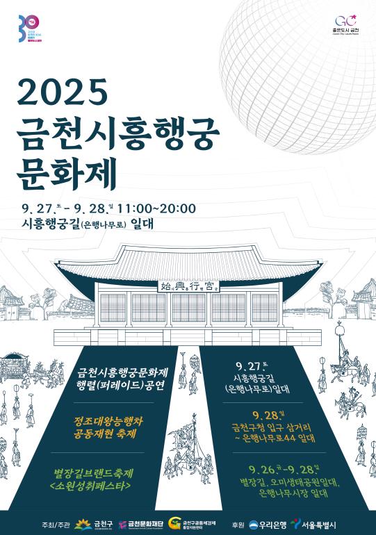 [뉴스스텝] 금천구와 금천문화재단은 27일과 28일 양일간 금천구 은행나무로 일대에서 ‘2025 금천시흥행궁문화제’를 개최한다고 밝혔다. 인근에서 하루 전날인 26일부터 지역 대표 축제인 ‘2025 별장길 브랜드 축제(부제: 소원성취페스타 소·성·페)‘도 열려 축제의 한마당이 펼쳐질 것이라고 구는 설명했다.