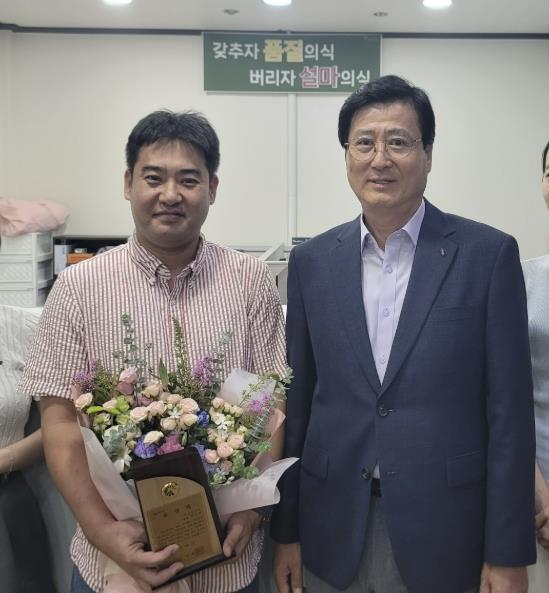 [뉴스스텝] 홍성군 광천읍은 지난 12일 산들푸드 양민석 대표에게 홍성군 군정발전 유공 표창을 수여했다고 밝혔다.