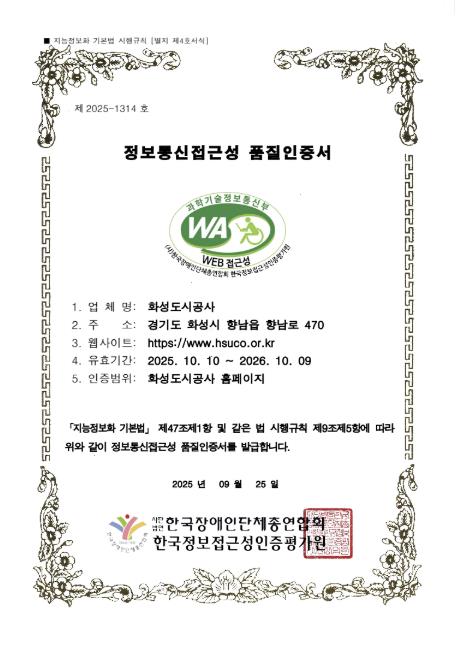화성도시공사, 3년 연속 '웹 접근성 품질인증'