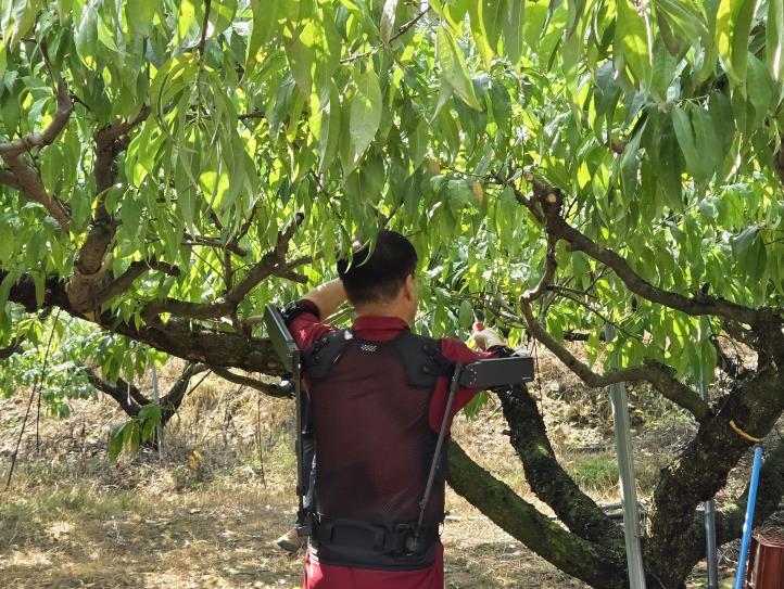 조끼형 구조로 설계된 이 장비는 반복적인 윗보기 작업이 많은 과수 전정·수확 과정에서 어깨 근력을 보조해 신체의 부담을 줄여주는 역할을 한다.