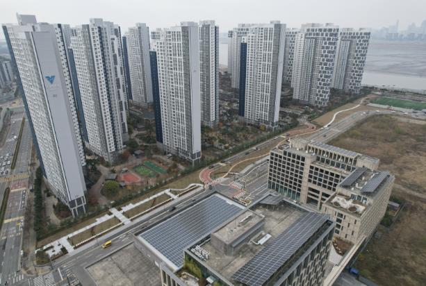 | ▲ 서울대 시흥캠퍼스(우측)와 아파트 사이 부지에 조성된 배곧 도시숲 전경 |