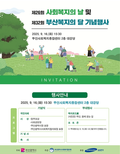 [뉴스스텝] 부산시는 16일 오후 3시 30분 부산사회복지종합센터 대강당에서 '제26회 사회복지의 날'과 '제32회 부산복지의 달'을 맞아 기념행사를 개최한다고 밝혔다.