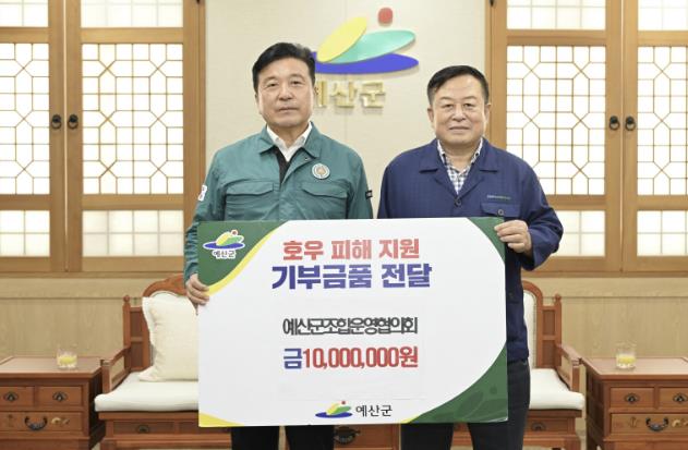 [뉴스스텝] 예산군은 지난 9일 오후 2시 군청 상황실에서 예산군조합운영협의회가 집중호우 피해 복구 지원을 위해 성금 1000만원을 기탁했다고 밝혔다.