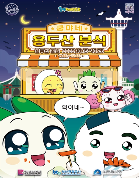 [뉴스스텝] 부산시는 부산관광공사와 오늘(15일)부터 10월 26일까지 용두산공원에서 '별바다부산 나이트 팝업 시즌3'으로 '쿵야네 용두산 분식 팝업'을 운영한다고 밝혔다.