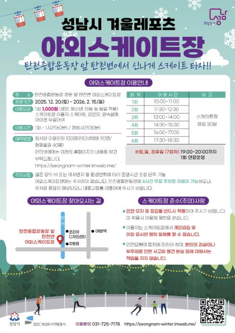 | ▲ 성남시 분당구 야탑동 탄천변 야외 스케이트장 운영 안내문 |