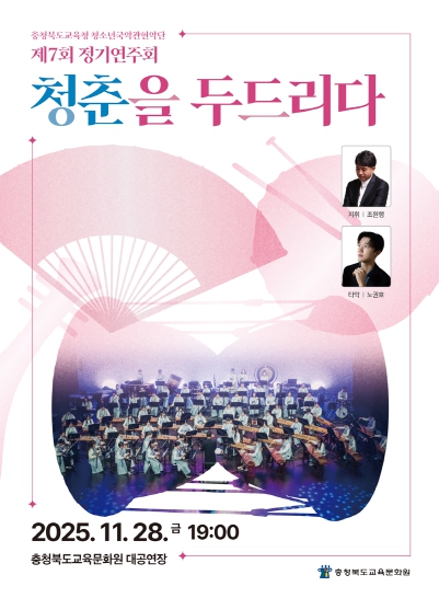 [뉴스스텝] 충청북도교육청 직속기관 교육문화원(원장 서종덕)은 28일 저녁 7시, 충북교육청 청소년국악관현악단이 교육문화원 대공연장에서 제7회 정기연주회 '청춘을 두드리다'를 열었다고 밝혔다.