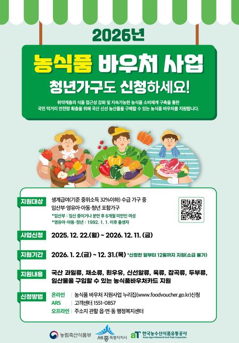 이기풍 우리농산물유통과장은 “농식품 바우처 사업이 농산물 유통 활성화에도 도움이 되도록 신규 대상자 홍보와 사용처 확대 등 사업 운영에 최선을 다하겠다”고 말했다.