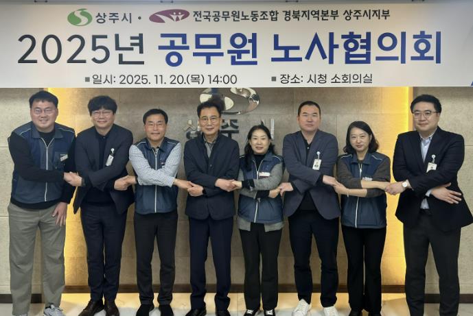 [뉴스스텝] 상주시는 11월 20일 시청 소회의실에서 공무원 노동조합과 직원 후생복지 증진과 근무 환경개선을 위한 ‘2025년도 공무원 노사협의회’를 개최했다.