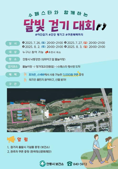 [뉴스스텝] 안동시는 7월 26일부터 8월 3일까지 진행되는 ‘2025 안동 수(水)페스타’ 축제기간 중 ‘달빛걷기대회’를 개최한다.