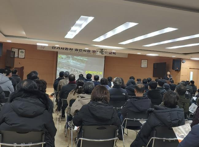 ▲ 지난해 12월 중원구청에서 진행한 성남시 공동주택, 공중이용 시설 관리자 대상 ‘전기차 충전시설 화재예방교육’ 때(자료사진)