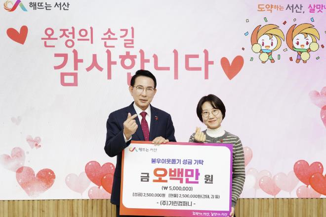 시는 이날 시청 시장실에서 이완섭 서산시장, 송주현 ㈜기린컴퍼니 대표가 참석한 가운데 기탁식을 개최했다.