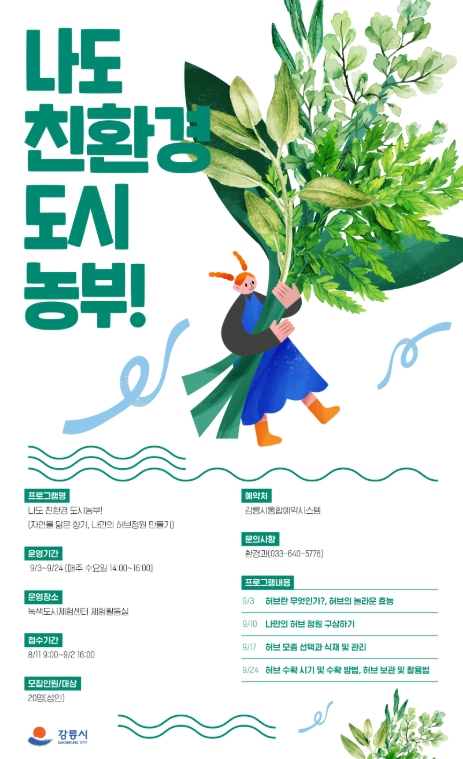 [뉴스스텝] 강릉시는 오는 9월 4일부터 성인을 대상으로 한 '나도 친환경 도시농부!' 환경교육 프로그램을 운영한다.
