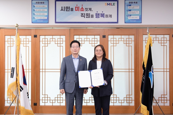 ▲ 인천시설공단(이사장 김재보, 좌측)은 15일 김연주 인하대학교병원 인천권역심뇌혈관질환센터 예방관리센터장(우측)을 공단의 산업보건의로 위촉했다. |