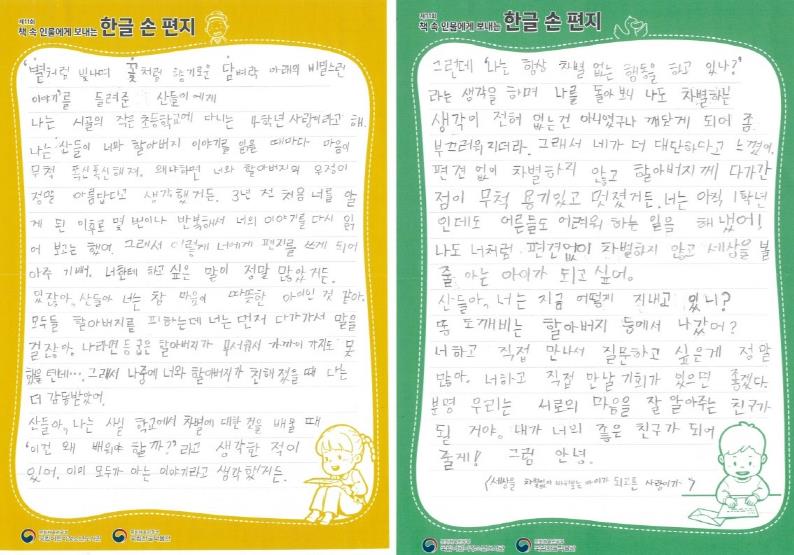 [뉴스스텝] ‘제11회 책 속 인물에게 보내는 한글 손편지’ 공모전에 참가한 김사랑 학생(원주 서원초 4학년)이 국립어린이청소년도서관장상(버금상) 수상의 영예를 안았다.