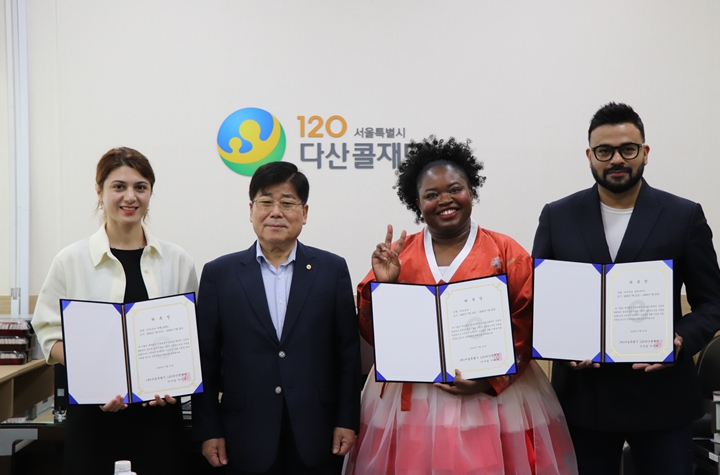 [뉴스스텝] 서울시 120다산콜재단(이사장 이이재)은 7월 21일 외국인들의 서울생활 편의를 높이기 위해 ‘외국인 서울생활 도우미120’을 위촉했다. 다양한 문화적 배경과 경험을 지닌 ▲럭키(아비셰크 굽타, 인도) ▲라힐(아마도바 라힐, 아제르바이잔) ▲마포 로르(카메룬계 프랑스인)가 120다산콜재단 운영자문으로 위촉되어, 외국인에게 필요한 정보 지원과 서울생활 도우미로 활동한다.