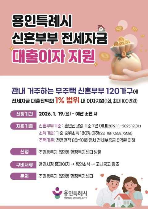 용인특례시, 2026년 신혼부부 전세자금 대출이자 지원사업 신청 접수