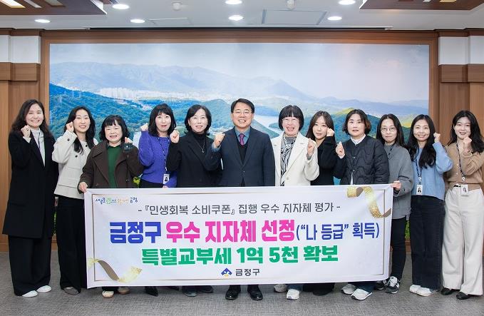 [뉴스스텝] 부산시 금정구는 지난 10일 행정안전부가 실시한 『민생회복 소비쿠폰』 집행 우수지자체 평가에서 “나 등급”을 획득하며 우수기관으로 선정됐다고 밝혔다.