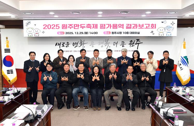 김문기 부시장은 “이번 보고회는 단순 평가가 아닌, 내년 축제를 준비하는 출발점”이라며, “객관적인 분석 결과와 현장의 목소리를 적극 반영해 원주만두축제를 지역을 대표하는 지속 가능한 미식 축제로 발전시키겠다”라고 말했다.