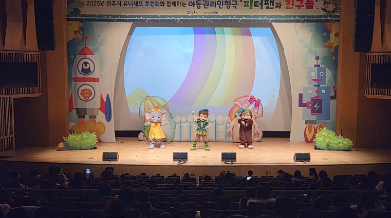 [뉴스스텝] 원주시는 아동의 권리에 대한 이해를 높이고 존중 문화를 확산하기 위해 지난 19일 치악예술관에서 유니세프 원주시후원회(회장 김효종)와 함께 아동권리교육 인형극 ‘피터팬과 친구들’ 공연을 진행했다.