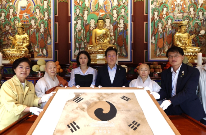 [뉴스스텝] 이재명 대통령 내외는 17일 오후 서울 은평구에 위치한 진관사를 방문했다. 진관사는 일제강점기 일장기 위에 먹물로 태극문양과 4괘를 덧칠해 만든 '진관사 태극기'와 독립신문이 발견된 역사적인 사찰이다.